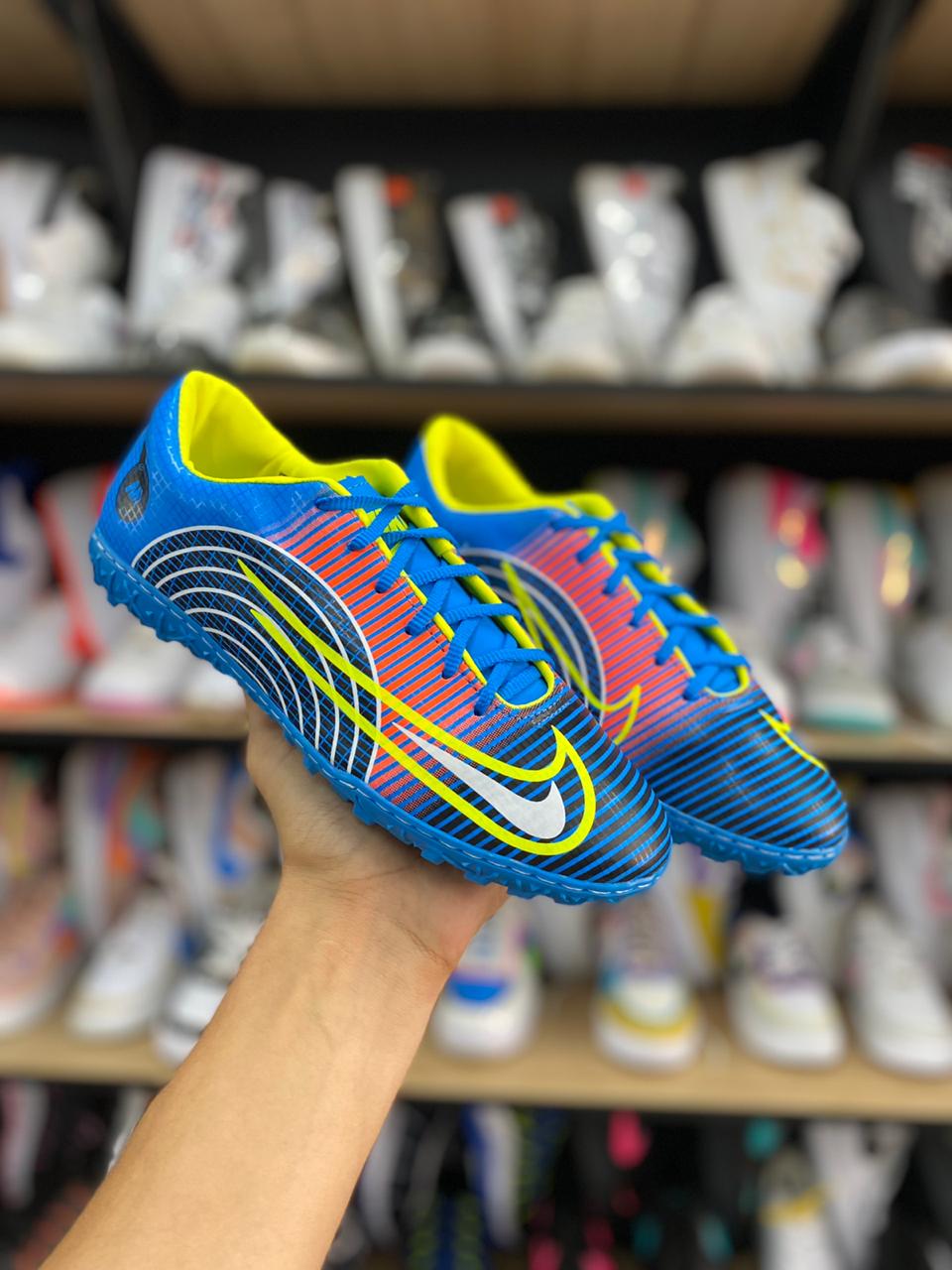 Apresentamos as Chuteiras Society [Marca], a combinação perfeita de estilo, performance e durabilidade para você dominar as quadras de society. Com um design moderno e agressivo, e fabricadas com materiais de alta qualidade, estas chuteiras elevam seu jogo a um novo patamar, proporcionando conforto excepcional e controle de bola preciso em cada movimento.