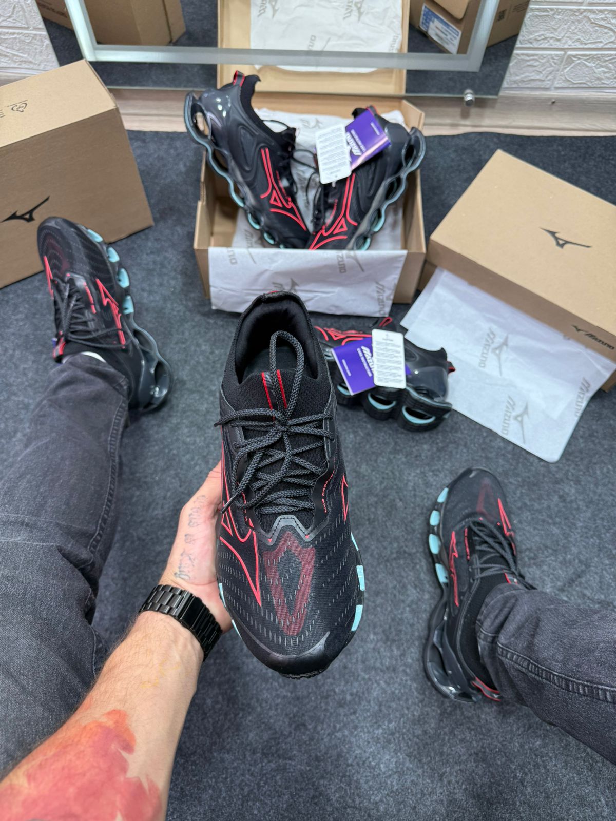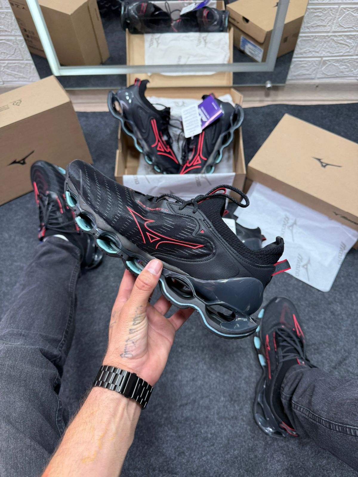 Mizuno Wave Prophecy 14 Preto e Vermelho Atacado
