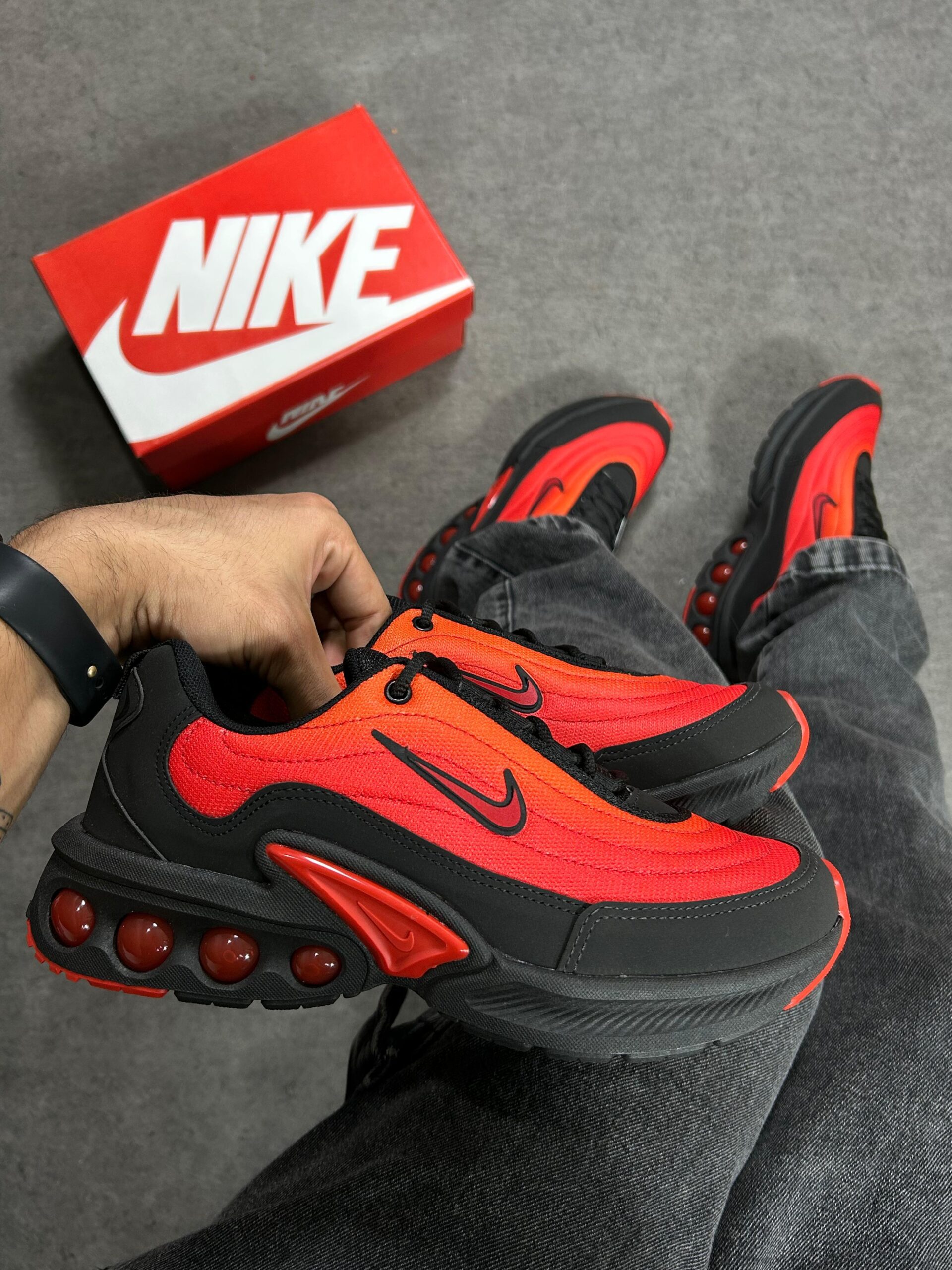 O Nike Air Max DN na combinação clássica preto e vermelho (cod. DV3337‑600) traz uma fusão elegante entre design moderno, conforto extremo e forte potencial de revenda em atacado.