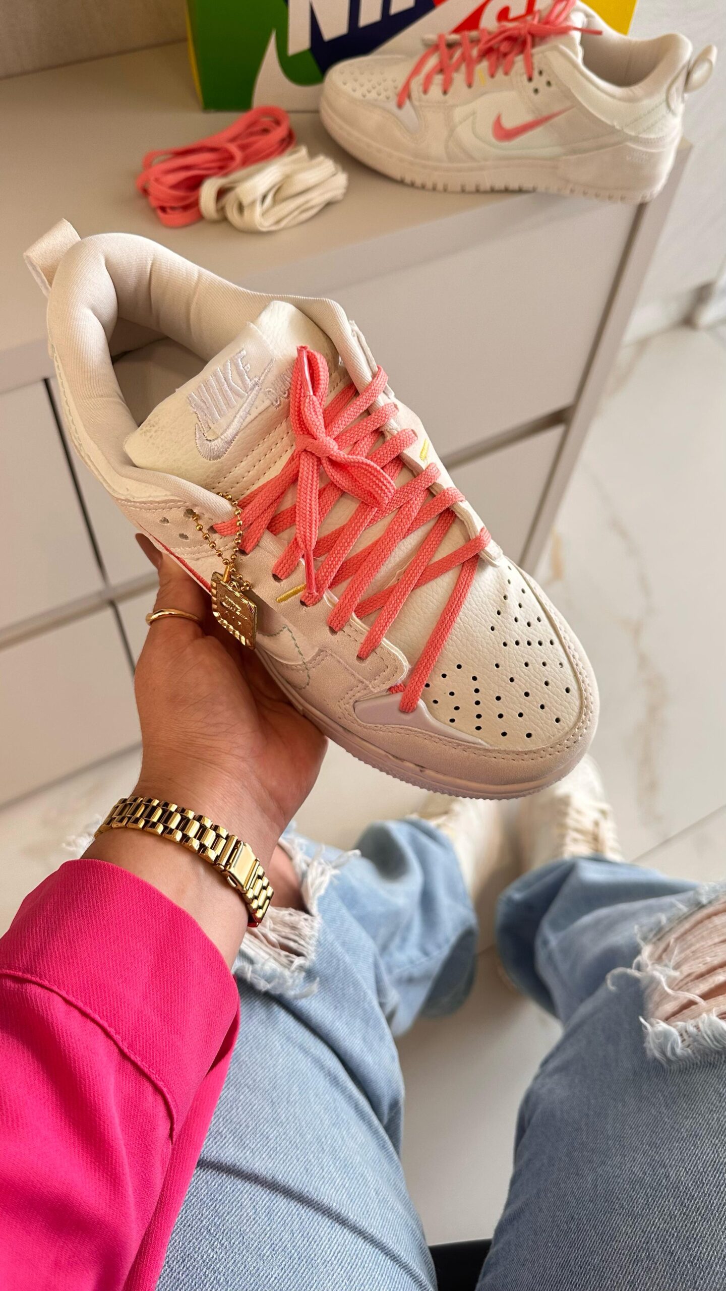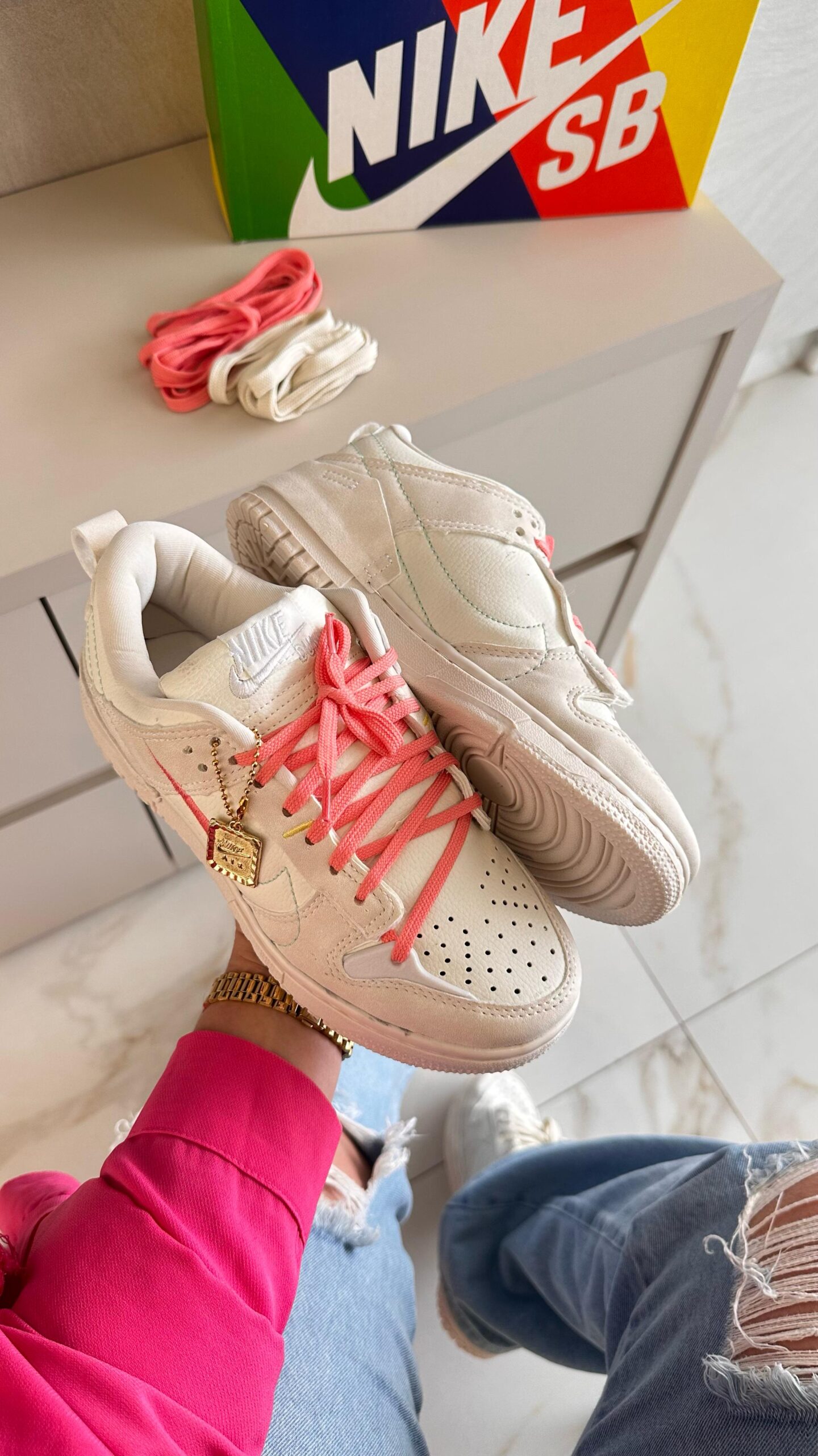 Nike Dunk Low Disrupt Branco e Rosa Atacado