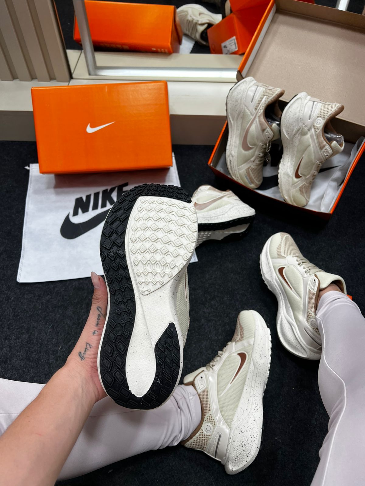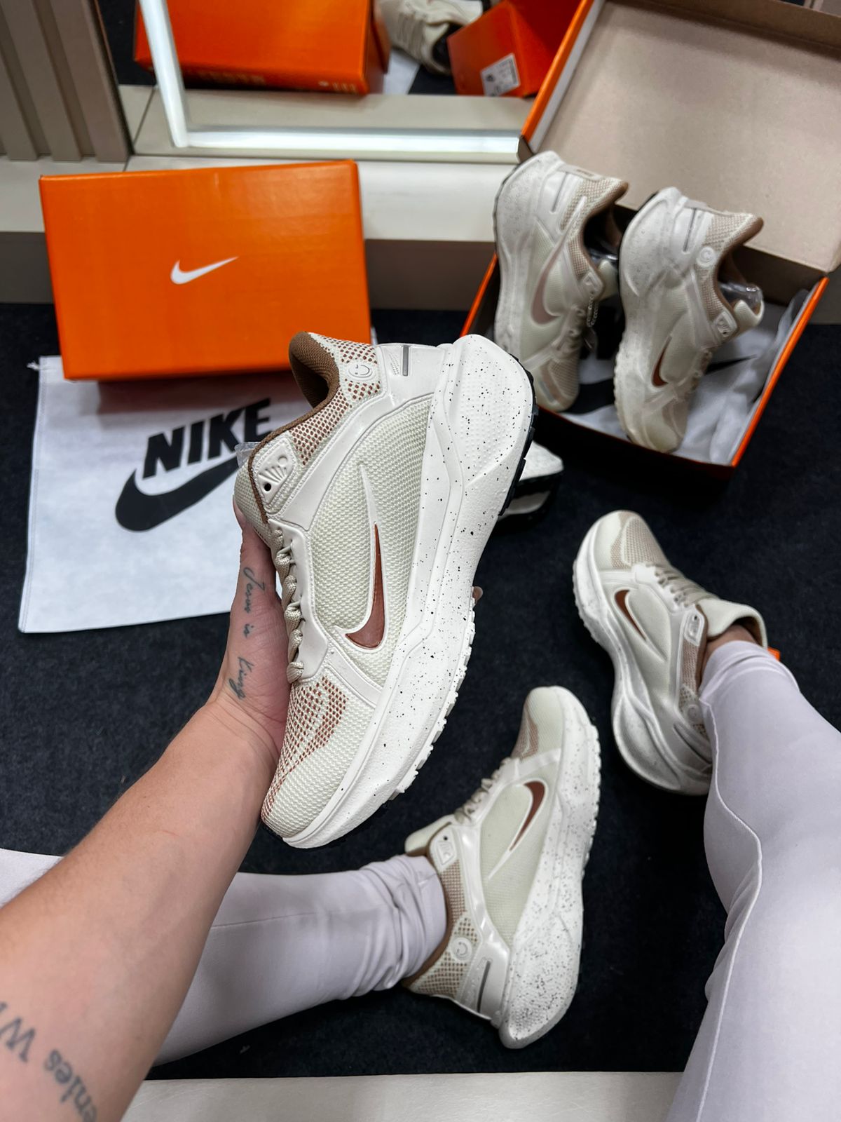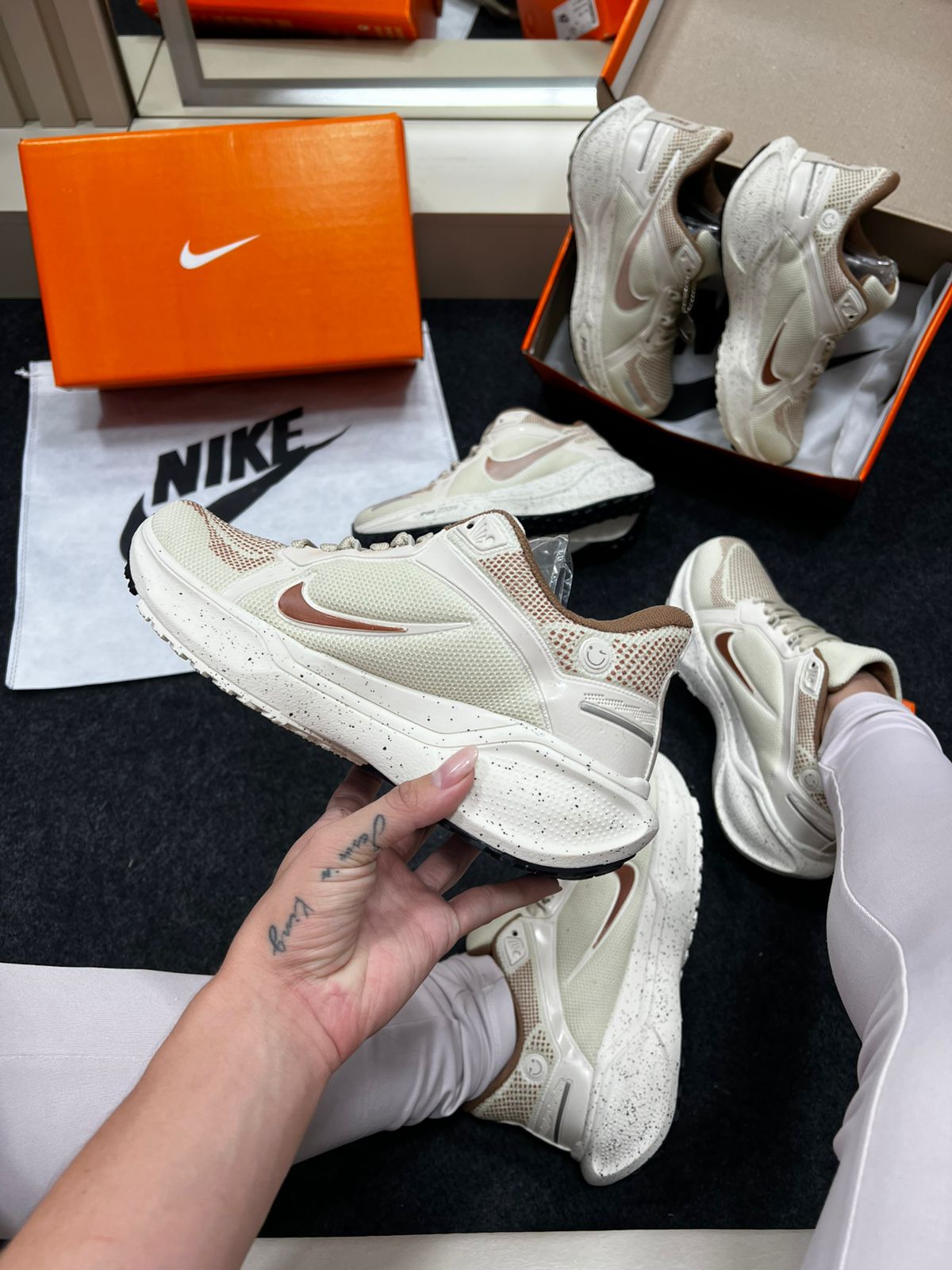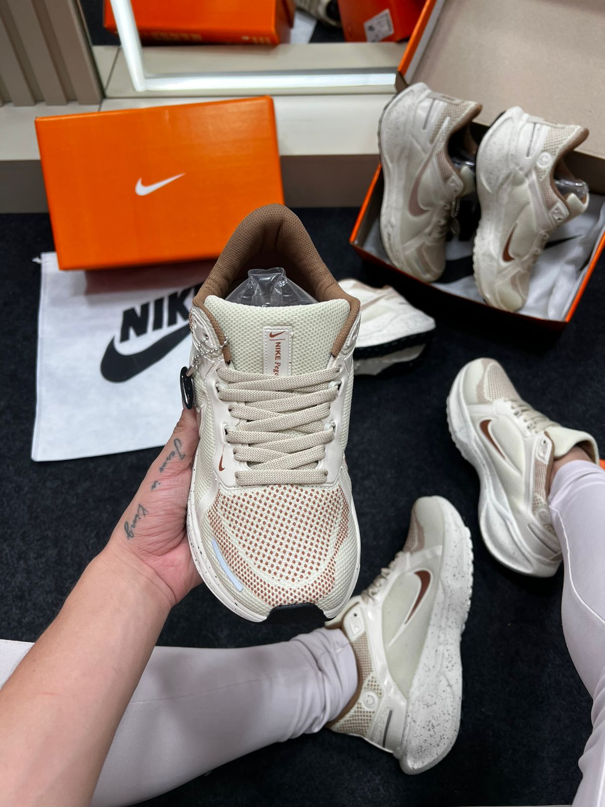O Nike Air Zoom Pegasus 41 na cor Areia oferece um visual neutro-sofisticado que combina com uma ampla variedade de looks, do casual urbano ao treino leve. A tonalidade areia (tonalidade bege clara ou “sand/cream”) confere versatilidade, permitindo que o tênis seja usado com jeans, calças cargo, peças claras ou escuras — enquanto a construção técnica da linha Pegasus garante conforto e durabilidade.