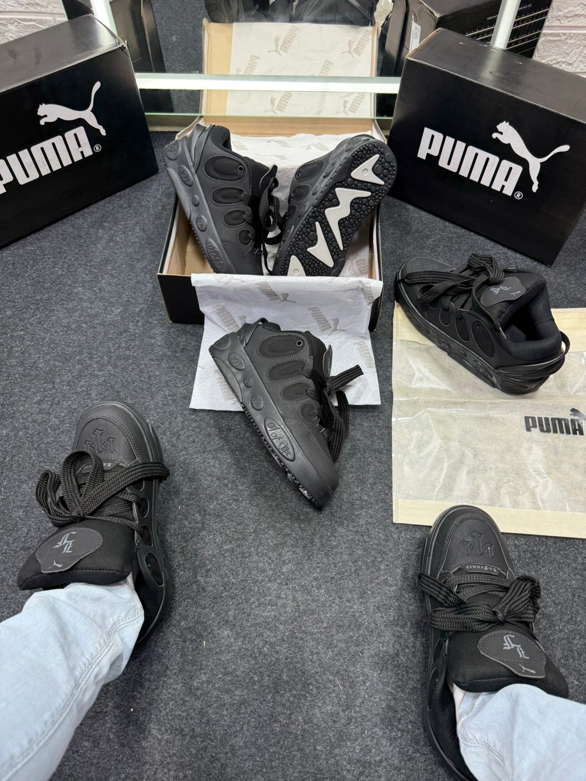 Ofereça no seu estoque um estilo urbano elevado com o PUMA LaFrancé Premium Preto — parte da collab entre Puma e o astro do basquete LaMelo Ball. Esse modelo combina visual sofisticado todo preto (monocromático) com detalhes premium e design robusto inspirado no estilo Y2K / chunky sneaker. Ele transmite exclusividade, força e modernidade — ideal para quem busca um item de destaque na vitrine.