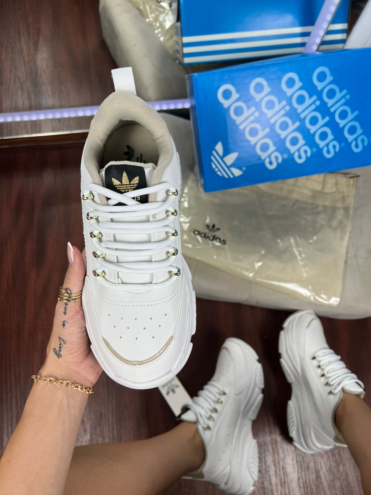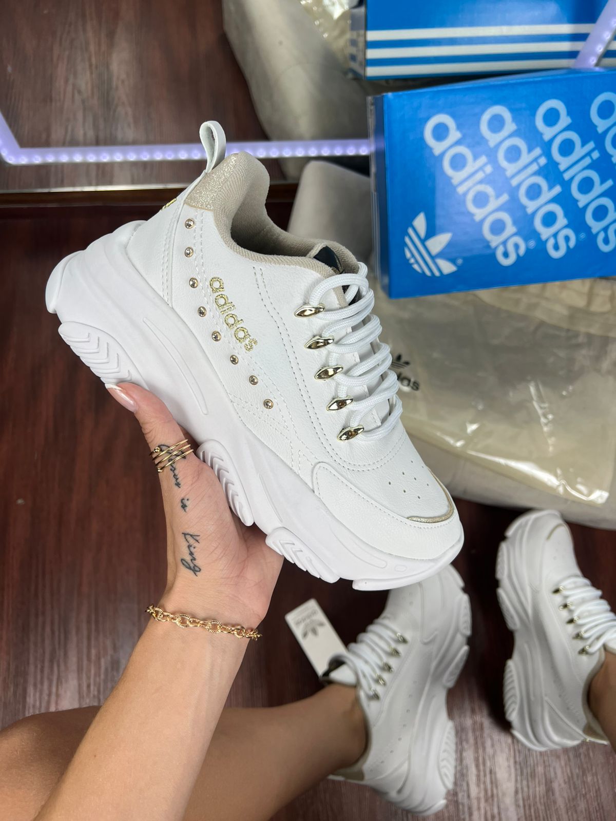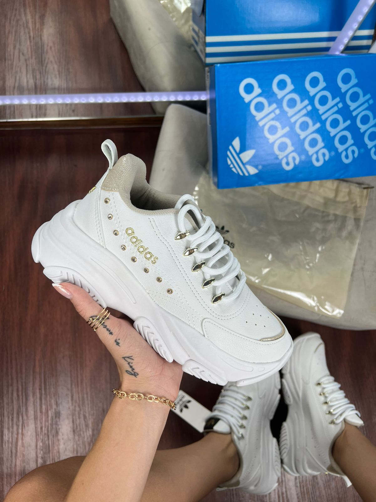 Tenis Adidas Plataforma Strass Branco Ouro Feminino Premium 1