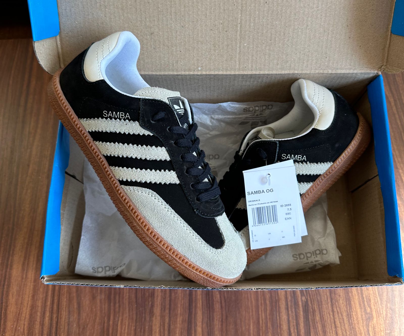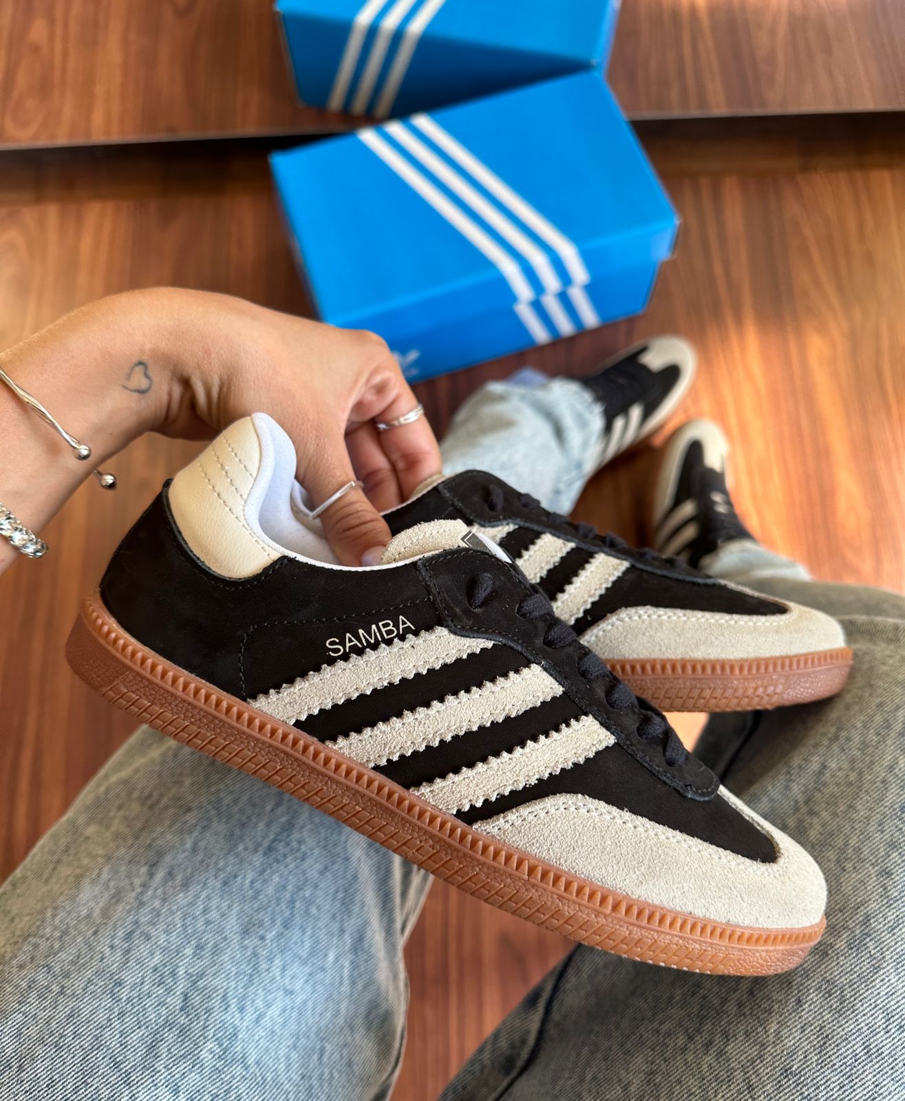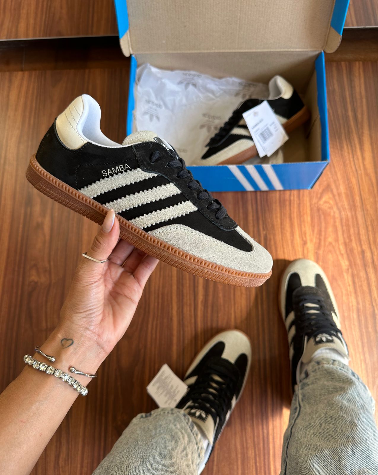 Tênis Adidas Samba Couro Preto Branco Feminino Premium