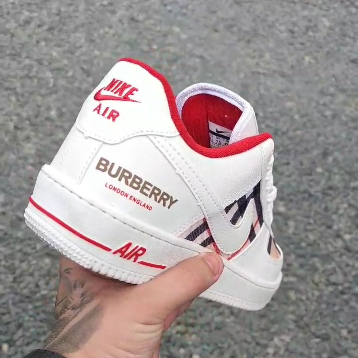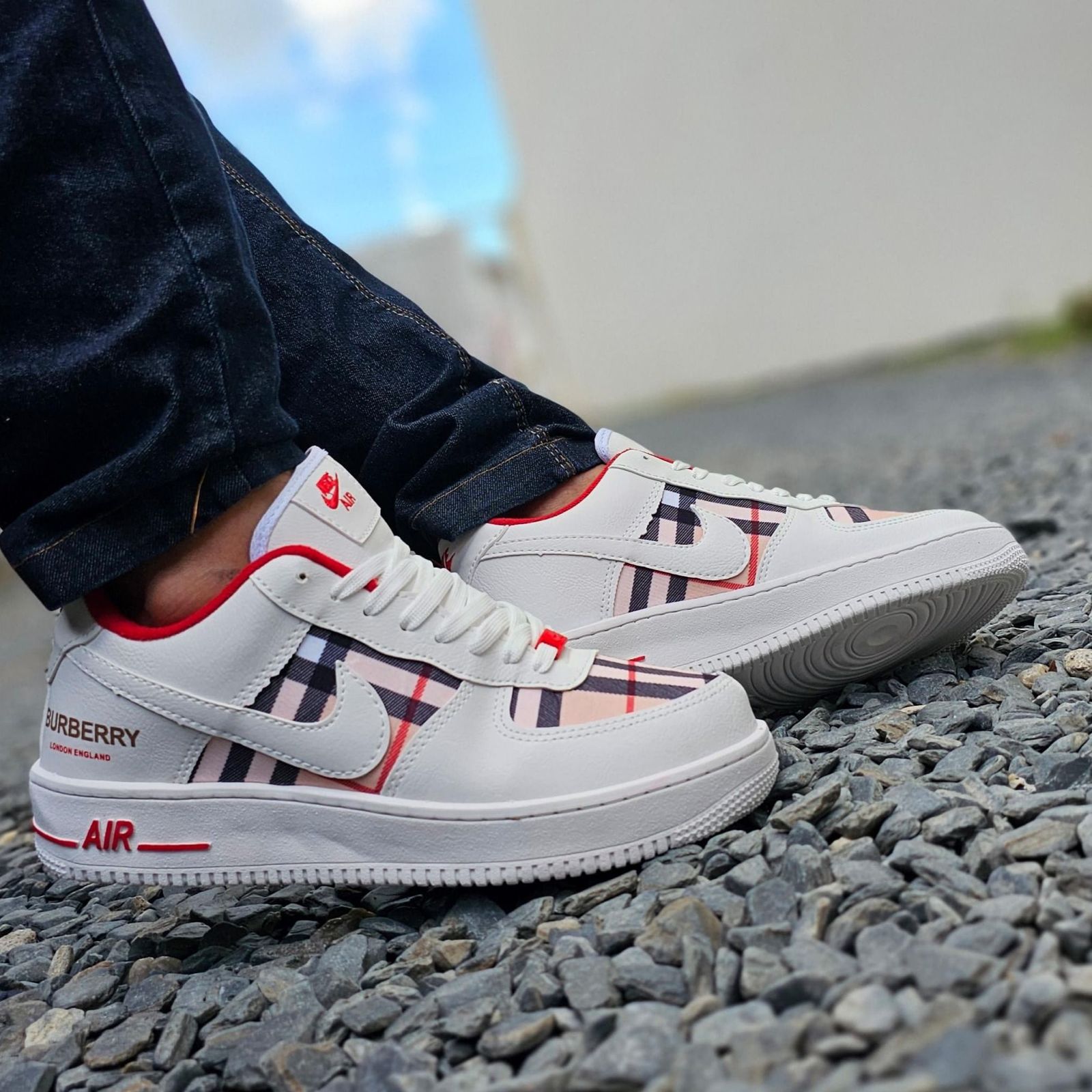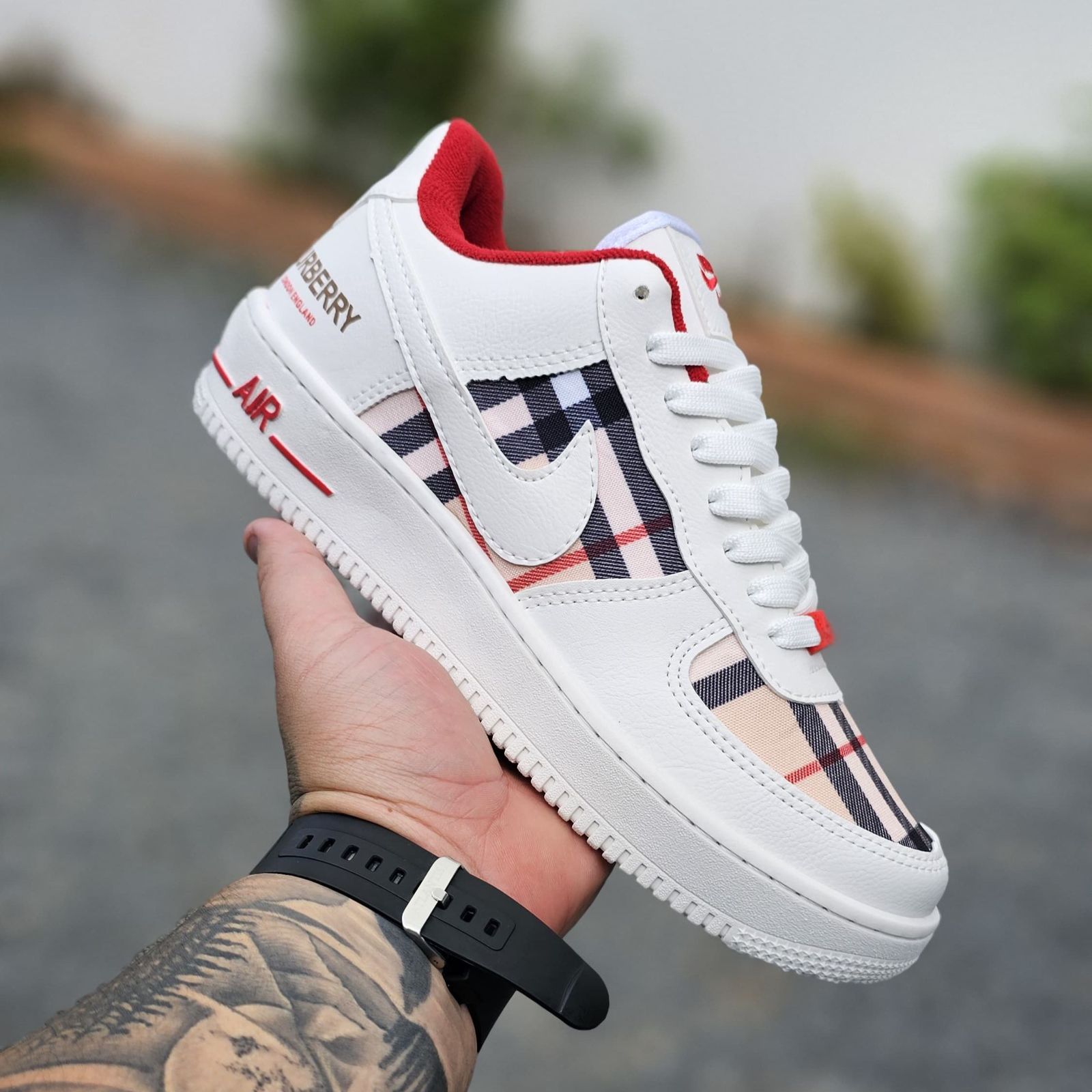 Tênis Nike Air Force Burberry BC/Verm Xadrez Grade Fechada