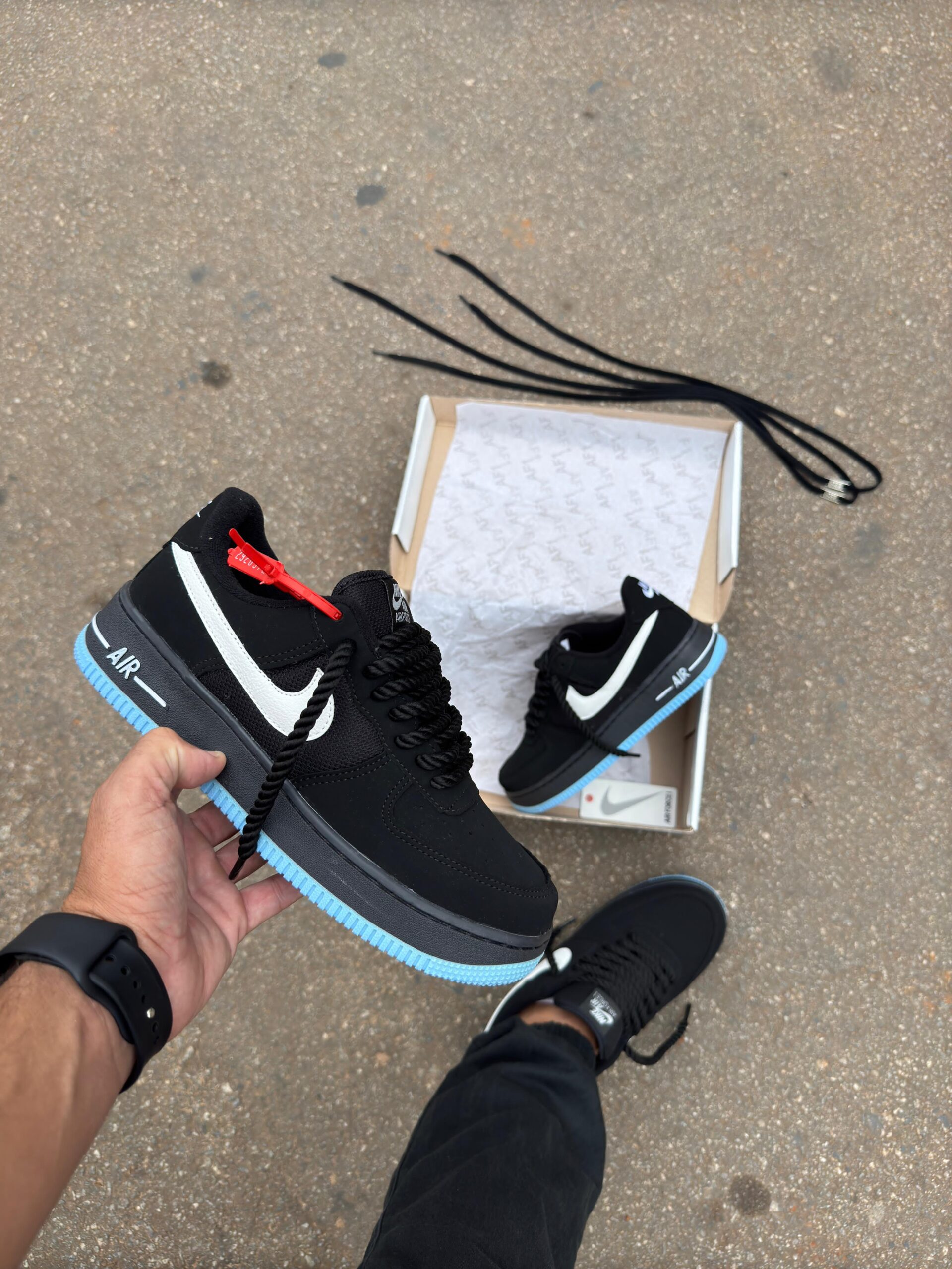Tênis Nike Air Force Preto Azul Masculino Premium