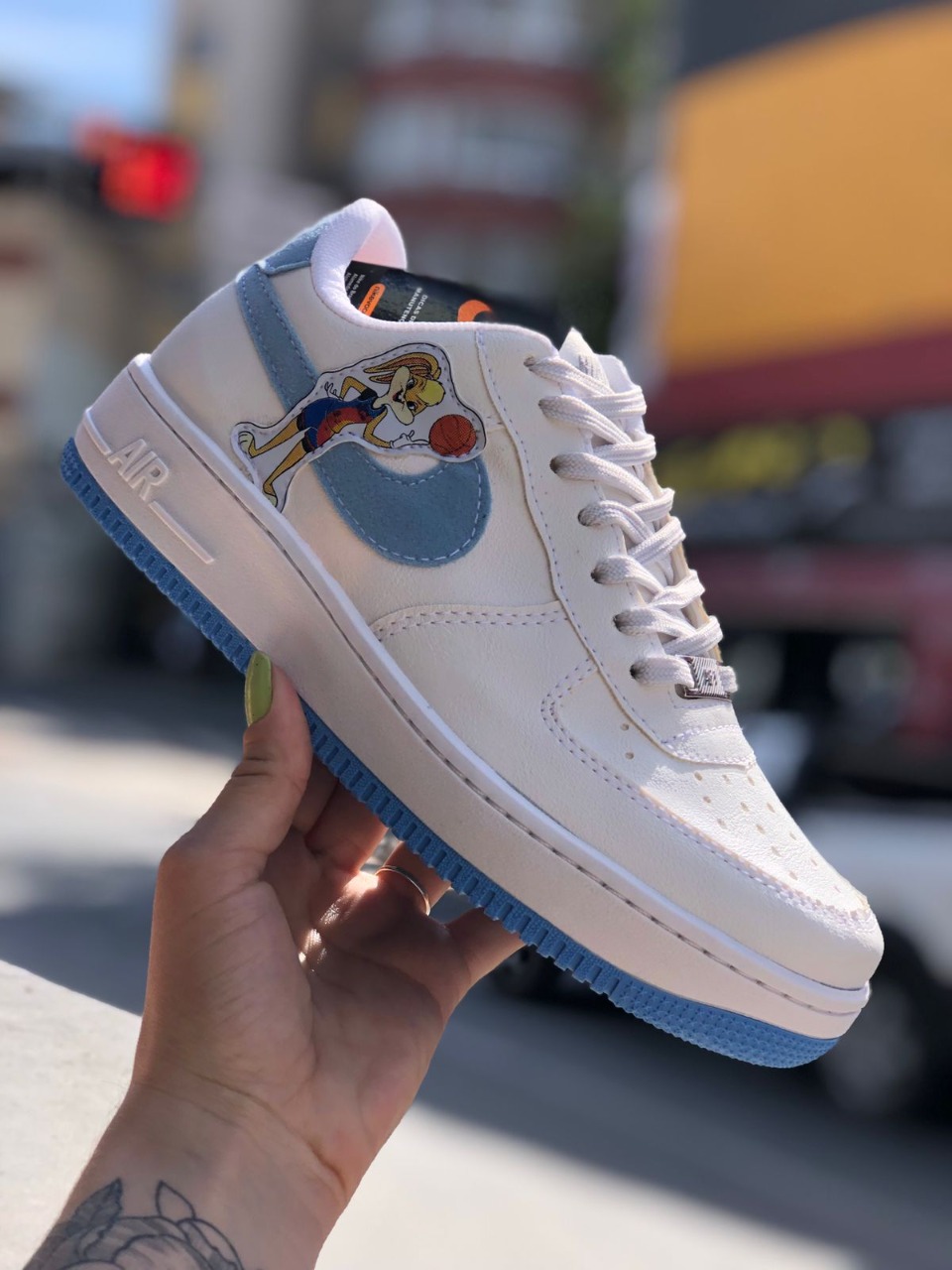 Estilo Inconfundível: Destaque-se da multidão com o design exclusivo e a atitude marcante do Tênis Nike Air Force 1 Space Jam – Lolla Bunny. Seja para compor um look casual ou para adicionar um toque esportivo a uma produção mais elaborada, este tênis é a escolha perfeita.