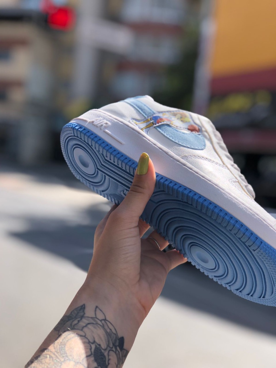 Detalhes que Fazem a Diferença: Cadarços personalizados, perfurações na biqueira para respirabilidade e a icônica silhueta do Air Force 1 completam o design impecável deste tênis.
